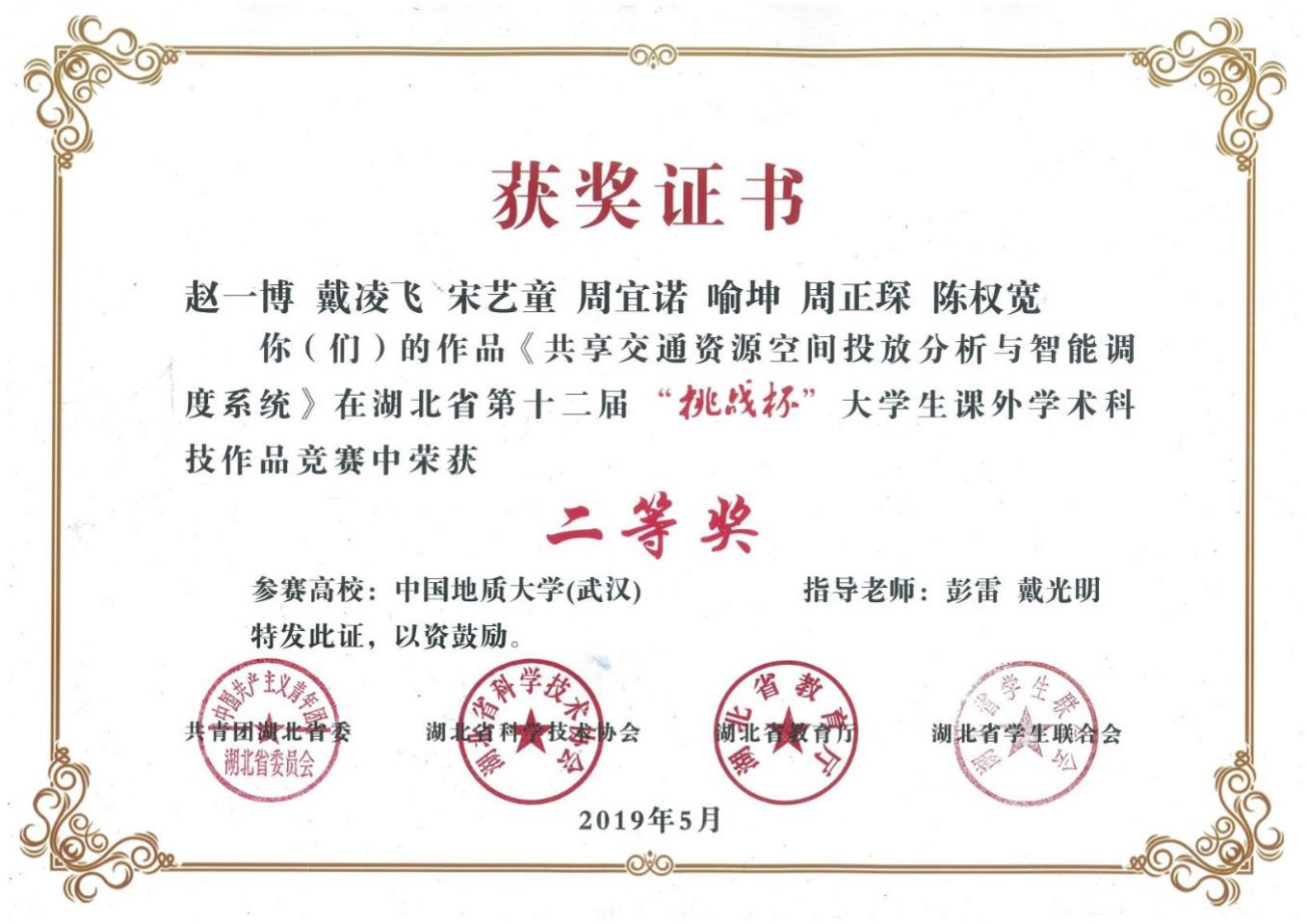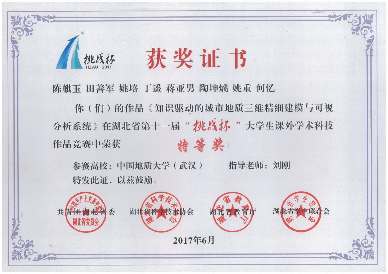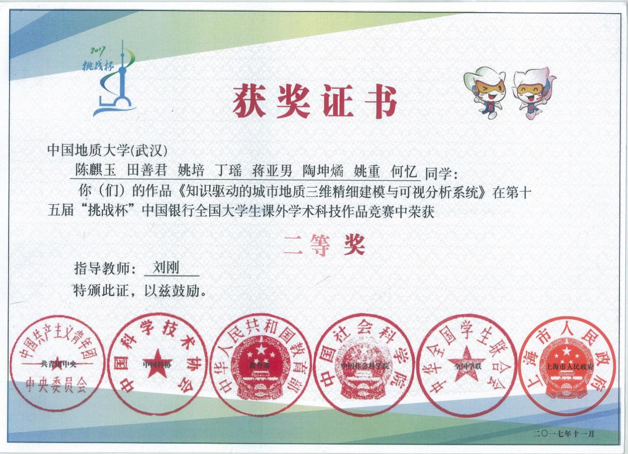 近年学生获奖:第十五届“挑战杯”全国大学生课外学术科技作品竞赛二等奖1项,湖北省“挑战杯”大学生课外学术科技作品竞赛特等奖1项、二等奖1项;中国地球科学大数据挖掘与人工智能挑战赛一等奖1项;全国大学生智能建造与管理创新竞赛国家级二等奖1项;美国大学生数学建模竞赛二等1项,三等奖3项;国家级大学生创新创业训练计划项目重点项目3项;全国移动互联网应用创新大赛二等奖2项、计算机仿真大赛全国二等奖1项;中国“互联网+”大学生创新创业大赛湖北赛区复赛银奖、铜奖各1项。