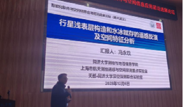同济大学冯永玖教授则带来了《行星浅表层构造和水冰赋存的遥感反演及空间特征分析》为题的报告,冯教授介绍了遥感智能反演技术如何在月球、火星等行星浅表层构造与地层构造识别的遥感探测中发挥关键作用,尤其在空间数据的分析与解译方面。通过展示遥感数据处理的最新成果,冯教授讨论了遥感技术在深空探测中的挑战和未来发展方向,突显了其在行星科学中的巨大潜力。