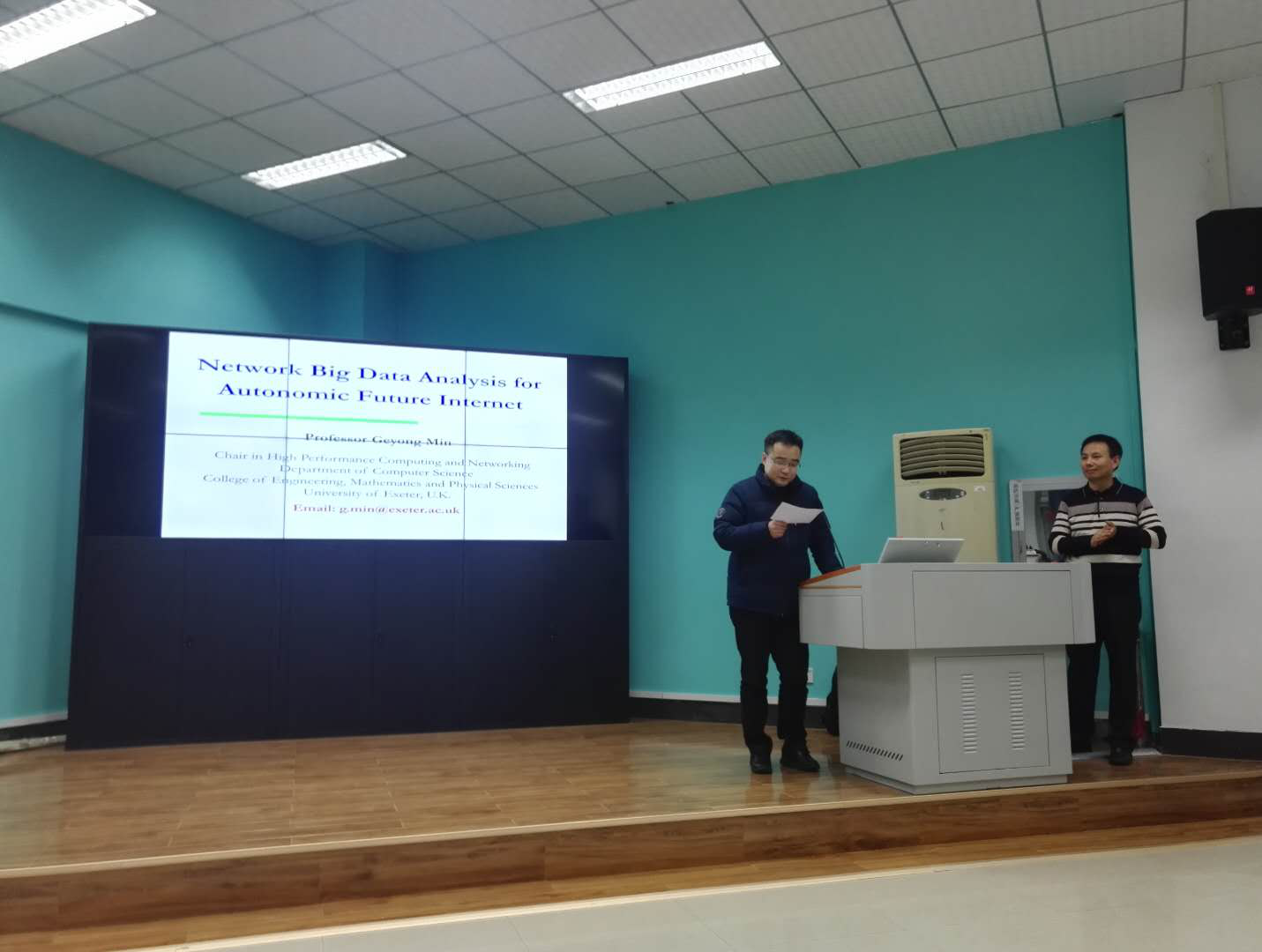1月2日,应十大买球的正规网站院长王力哲教授的邀请,英国Exeter大学(计算机学科首席教授)闵革勇教授来院访问,并做了题为“Network Big Data Analysis for Future Intelligent Internet”的学术报告。闵革勇教授在计算机/通信学科的IEEE与ACM国际顶级期刊上发表学术论文140余篇,多次获得会议最佳论文奖,现任6个国际期刊的编委(含计算机学科顶级国际期刊IEEE Transactions on Computers),18个国际期刊专刊的编辑,先后担任了18个国际会议/研讨会的大会主席和程序委员会主席,80多个国际学术会议的程序委员会委员,并在多个国际学术会议与研讨会上做大会特邀主题报告。学术报告在王力哲教授的郑重介绍下正式开始。