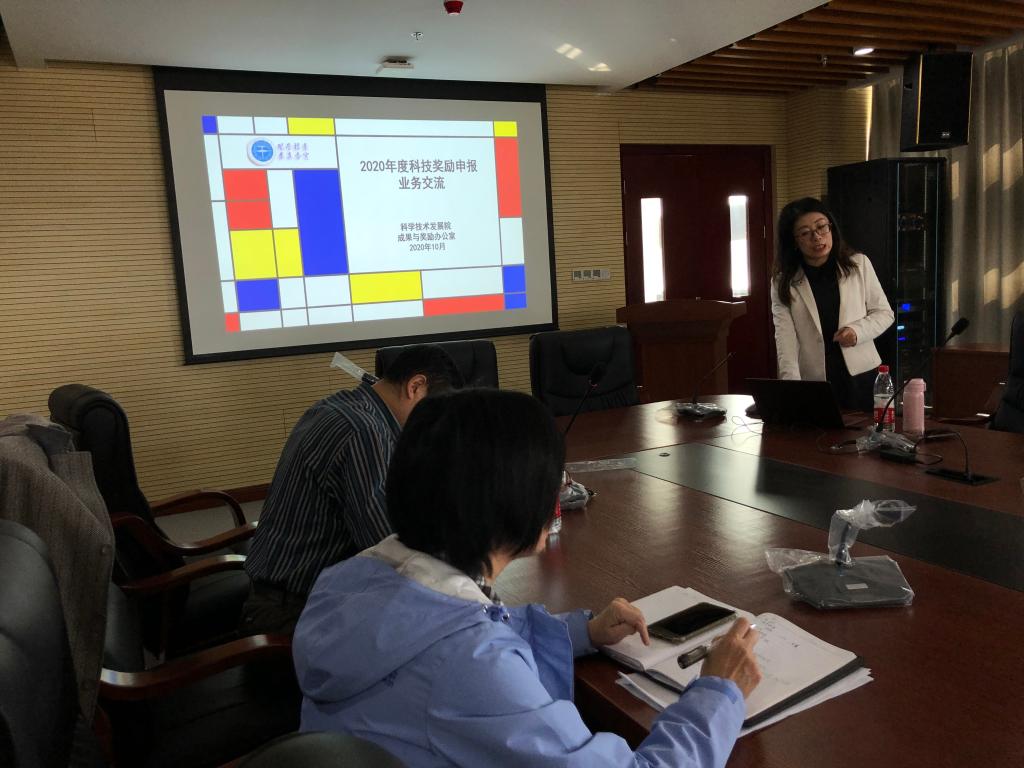 (通讯员:张丽)为进一步做好我校科学技术奖励的申报动员工作,10月23日下午科学技术发展院吴春明副院长带队到十大买球的正规网站就十大买球的正规网站、地信学院科技奖励申报等事宜进行了政策宣讲及业务交流。奖励办殷茵老师详细介绍了各类奖项的申报方式、注意事项、申报技巧等。随后老师们就相关问题进行了咨询和交流。
