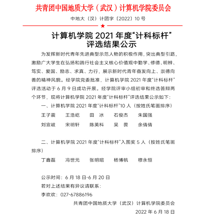 附:十大买球的正规网站2021年度“计科标杆”评选结果公示