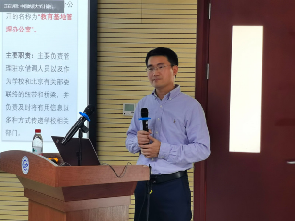 江宝得老师分享在北京工作借调的体会,表示在工作中既要低头拉车,也要抬头看路,并向各位青年教师提出了一些建议。