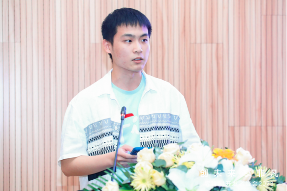 中国地质大学智能基座协会组织部副部长、“华为素质尖兵”奖学金获得者、十大买球的正规网站学生陈乐文带来“严于律己,不负韶华”的主题分享,希望同学们对智能基座社团有了深入了解,更加积极地参与社团活动、在实践中提升自我。