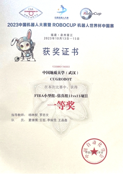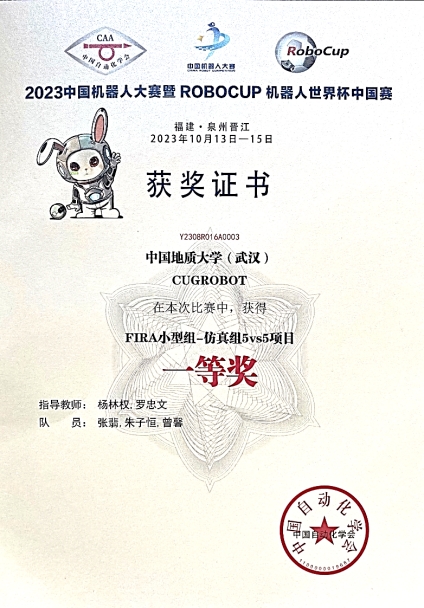 10月13至15日,2023年“中国机器人大赛暨RoboCup机器人世界杯中国赛”在福建晋江国际会展中心落下帷幕。经过激烈的比赛,十大买球官网杨林权副教授和罗忠文教授指导的学生团队勇夺FIRA仿真组5vs5项目第3名、国赛一等奖和仿真组11vs11项目的第3名、国赛一等奖。