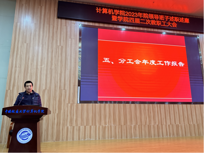 梁庆中作学院分工会2023年度工作报告。2023年,学院分工会紧紧认真履行工会“参与、维护、教育、建设”四项基本职能,带领全体会员积极参与学院的各项建设工作,在人才引进与培养、学科建设、民主管理及监督、院务公开、关心群众生活、促进教职工身心健康等方面做了大量工作,充分发挥了工会的桥梁纽带作用。
