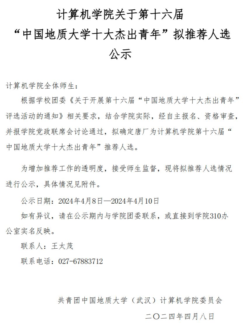 十大买球的正规网站关于第十六届“中国地质大学十大杰出青年”拟推荐人选公示