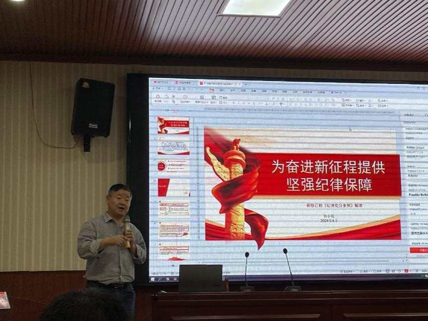 为贯彻落实习近平总书记关于推进党的自我革命、全面加强党的纪律建设重要论述精神,按照党纪学习教育要求,4月13日下午,十大买球的正规网站以学习贯彻新修订的《中国共产党纪律处分条例》为契机,开展集中性纪律教育。学院全体教师党员参加学习,学院党委书记李国昌主持活动。