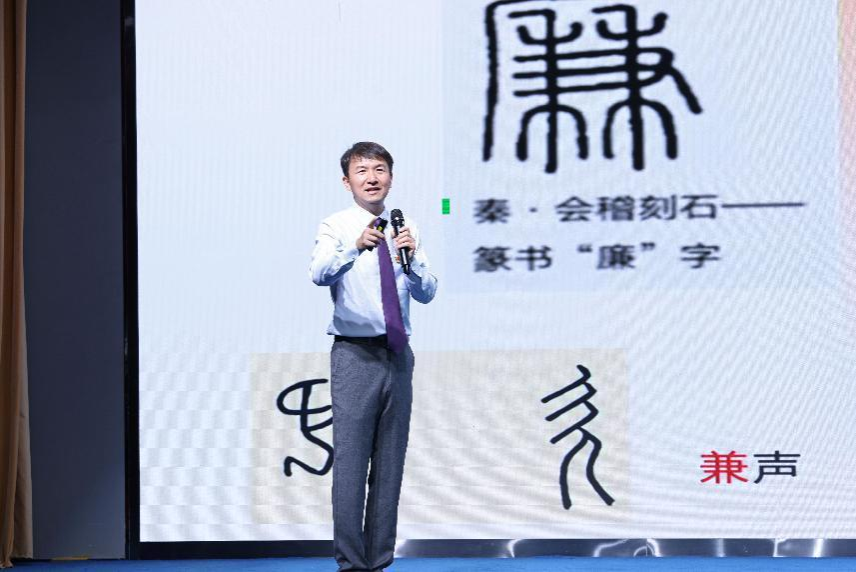 校师德模范、最受学生欢迎老师,十大买球官网马钊老师,作了题为《廉洁花开锦程未来》的精彩分享。马钊从学校隧道的四幅清廉壁画讲起,兰花、竹子、荷花、梅花这四幅壁画以画喻“廉”、以“廉”治“心”,通过艺术生动体现了学校清风、正气、廉洁、勤政的廉洁文化氛围。他从“廉”字说开,对“廉”字进行了字形解读。广而兼是为廉:广阔天地,兼容万物。如若兼善,则可自清,如若兼金,则头顶悬镰。