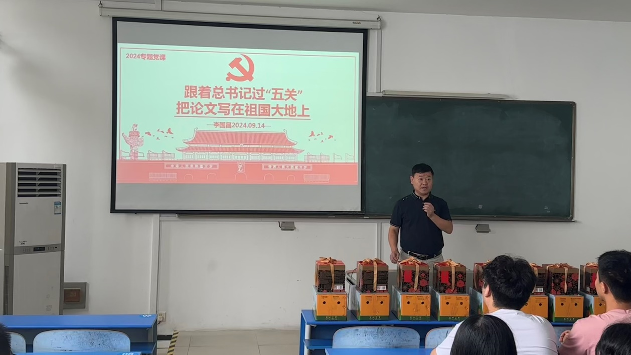 14日下午,学院在基地综合楼举行师生座谈。李国昌首先代表学院向全体师生致以节日的问候,接着以《跟着总书记过“五关”》为题讲授秭归专题党课。他从总书记在梁家河村插队时的过“五关”引申到当下空信学子要面对的“四关”即专业关、学习观、就业关、职业观,通过分享学长学姐的典型案例和学院学生的发展情况,勉励同学们充分利用实习资源,学以致用,把论文写在祖国大地上。