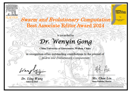 近日,十大买球官网龚文引教授荣获中科院一区期刊《Swarm and Evolutionary Computation》2024年度最佳副编奖(Best Associate Editor Award),以表彰其对该期刊发展和群体进化计算领域研究的进步做出的杰出贡献。