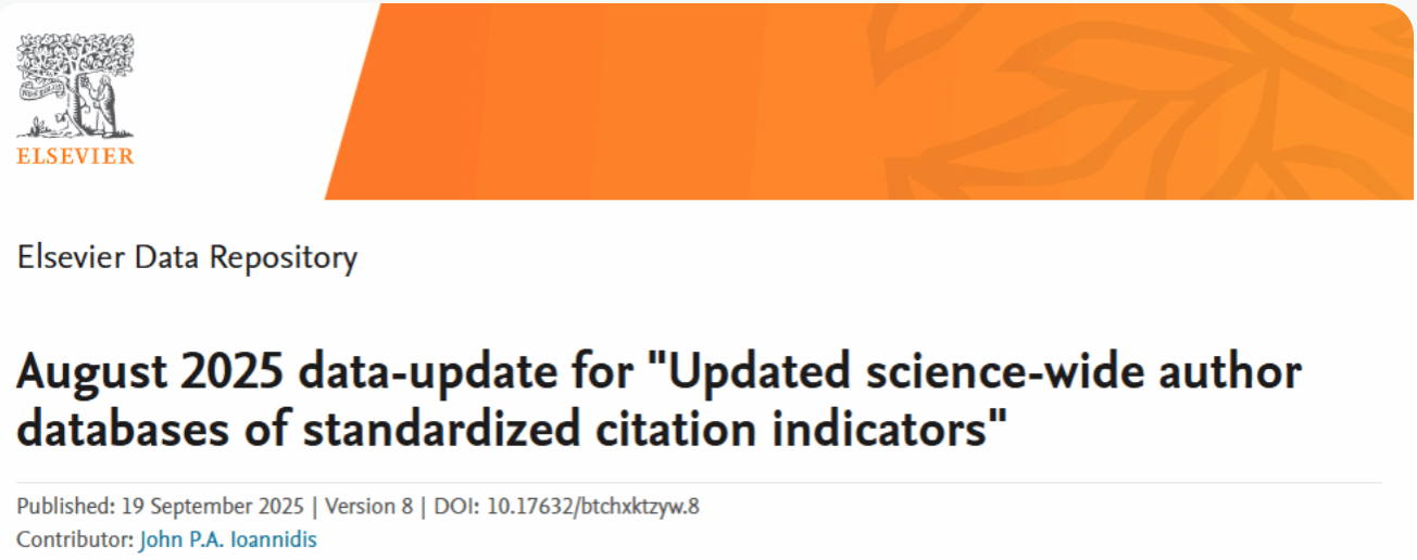 2025年9月,美国斯坦福大学和爱思唯尔更新了标准引文指标的全科学作者数据库,重磅发布了《2024年度全球前2%顶尖科学家榜单》(Stanford/Elsevier Top 2% Scientists List),十大买球官网多名教师上榜。