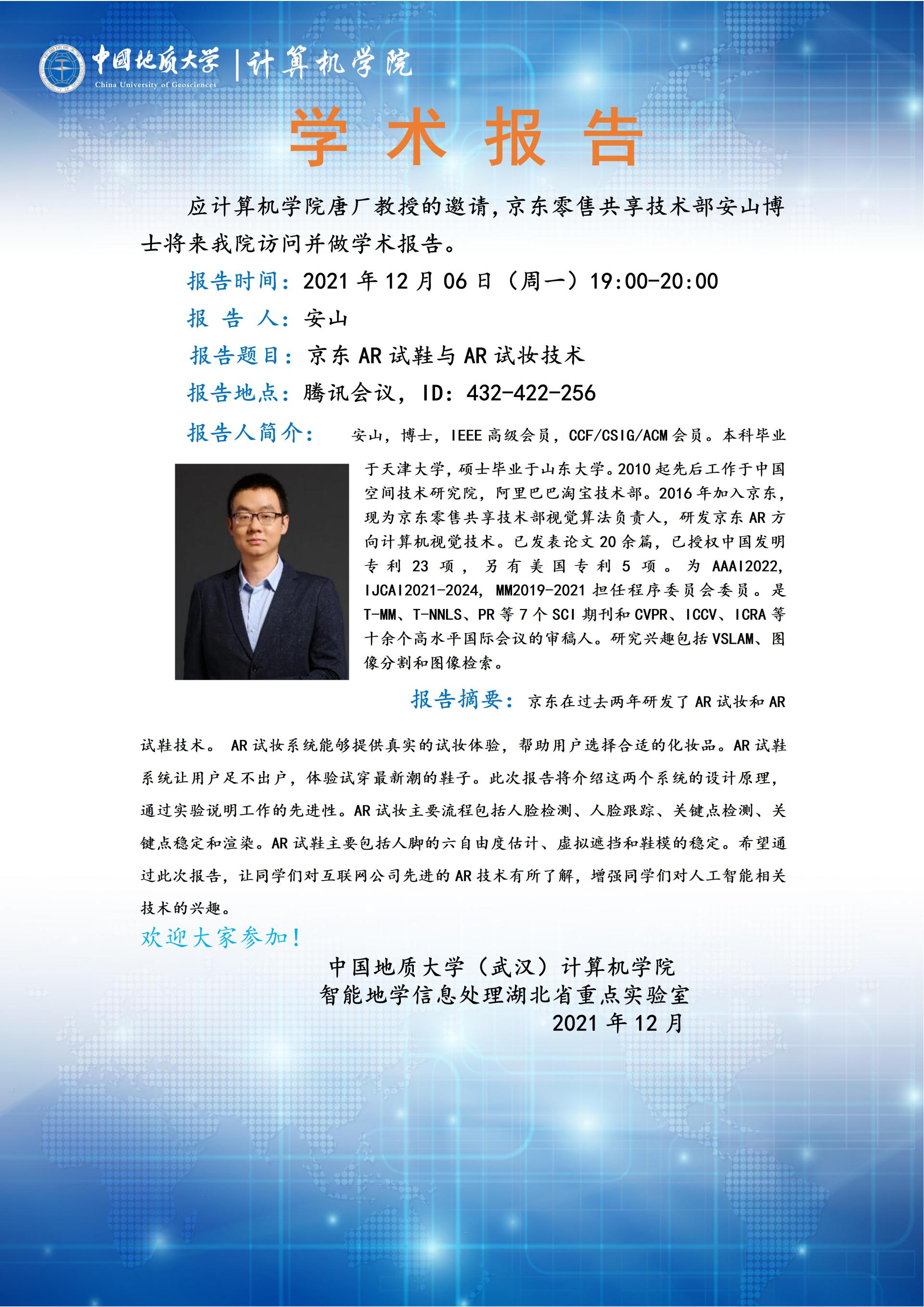 学术报告——京东零售共享技术部安山博士:京东AR试鞋与AR试妆技术