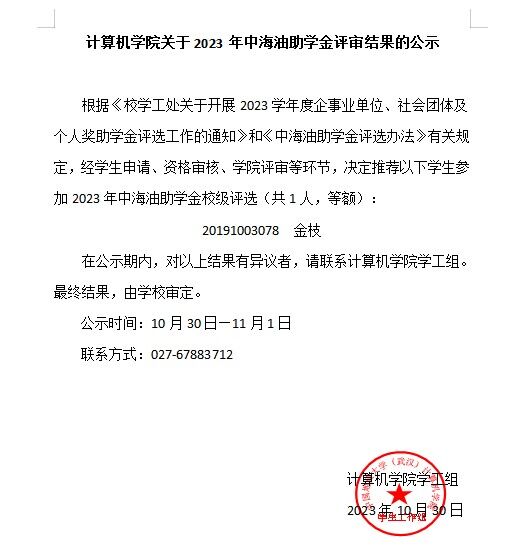 十大买球的正规网站关于2023年中海油助学金评审结果的公示