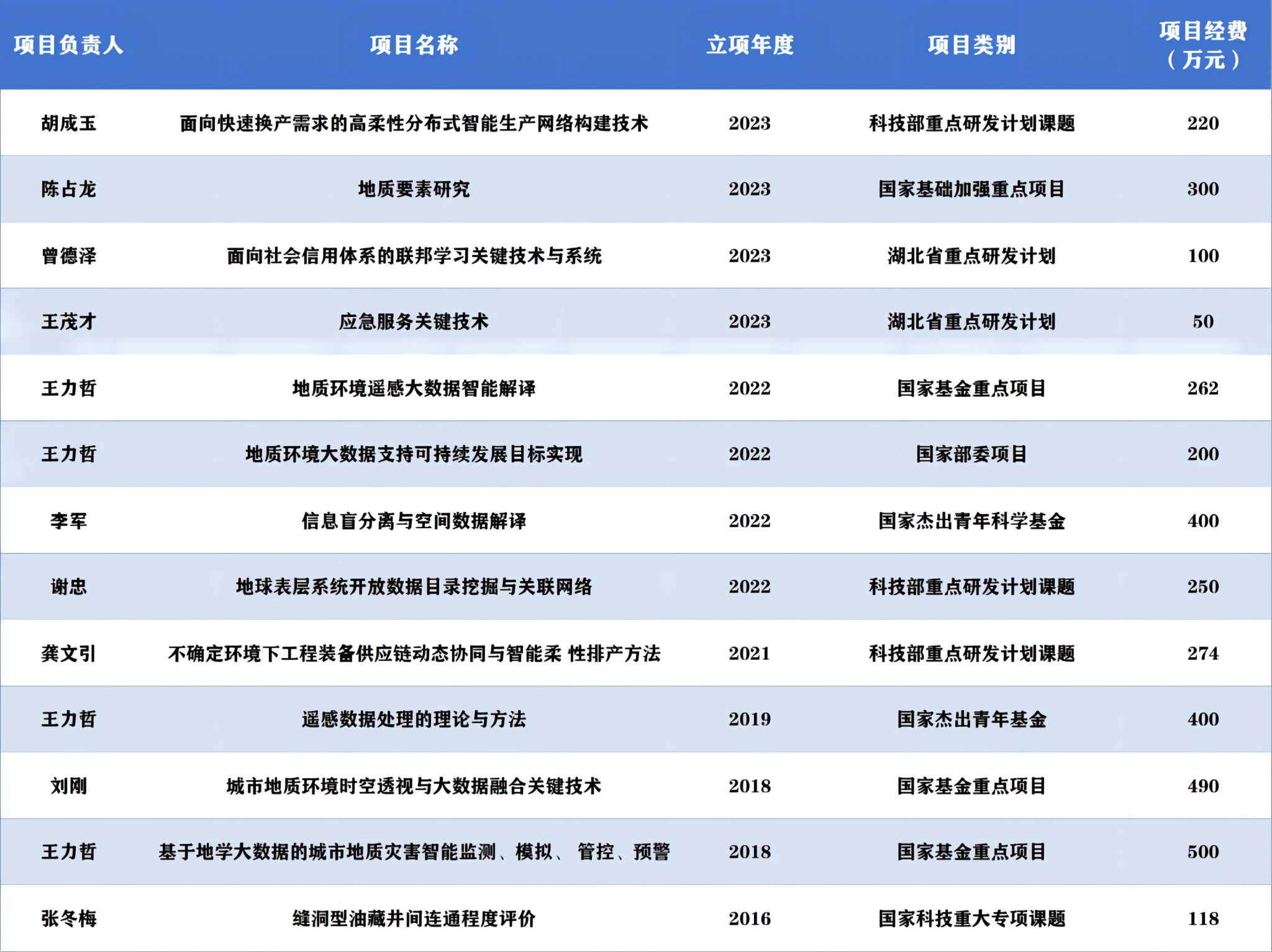 学院建有地理信息系统国家地方联合工程实验室、自然资源信息管理与数字孪生工程软件教育部工程研究中心、地理信息系统软件及其应用教育部工程研究中心、智能地学信息处理湖北省重点实验室、智慧地质资源环境技术湖北省工程研究中心、全空间智能信息处理技术及系统湖北省中试基地、地学大数据湖北省引智创新示范基地等国家及省部级科研平台。