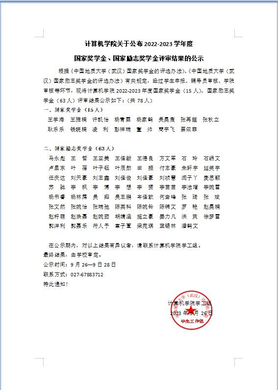 十大买球的正规网站关于公布2022-2023学年度国家奖学金、国家励志奖学金评审结果的公示