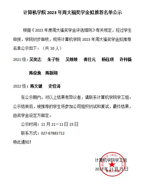 十大买球的正规网站2023年周大福奖学金拟推荐名单公示
