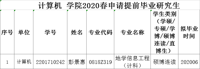 十大买球的正规网站2020春申请提前毕业研究生公示