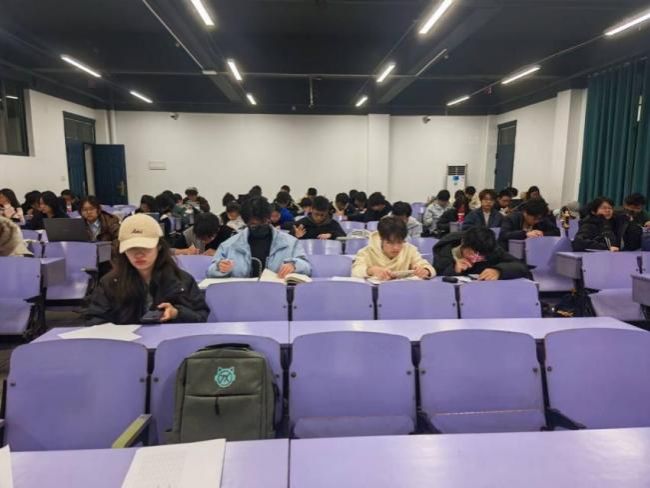第15周至19周,除了每周日的年级集体晚自习外,面向2025级重点学科学业困难的同学增设周五、周六集体晚自习,采用“自主选择参与+严格签到签退”模式,同学们可根据自身复习节奏任选一晚参与。2025级学生服务组联合值班值守,全程维护自习秩序,细致记录出勤情况,及时收集并反馈请假材料,为备考营造安静专注的集体学习氛围。