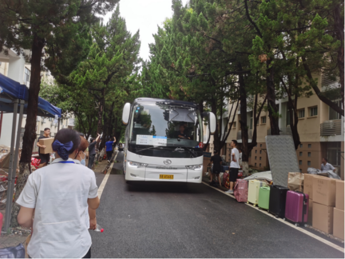 搬迁工作分上午和下午、南望山校区和未来城校区交替进行。早上7点,同学们已经开始陆陆续续将行李搬运至集合地点。