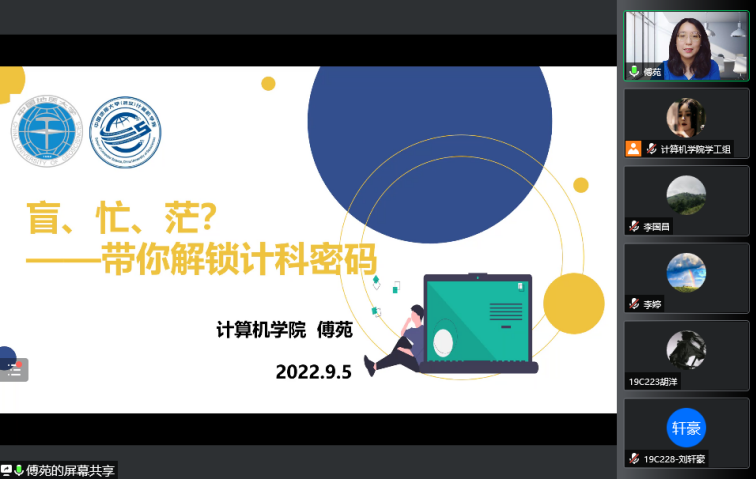 傅苑作了题为《盲、忙、茫?——带你解锁计科密码”的学院、专业及学风教育》的报告,她介绍了学院的基础设施、办学思路、学科建设、师资队伍等情况,对学生的生源质量、升学和就业前景进行分析阐述,希望同学们改变以往的学习方法和要求,针对不同阶段进行不同的规划和策略指导,并逐步付诸行动;在大学期间做到实现个人成长的“三个平衡”——纪律规范和个人自主的平衡、专业学习和素养提升的平衡、“他我”和“自我”的平衡,树立德智体美劳全面发展的目标,要抓紧学习,抵制诱惑,恪守学术道德,诚信考试,要增强专业认同,提升专业自信,在未来四年努力耕耘,克服盲目、忙碌与茫然,收获知识和智慧,提升能力。