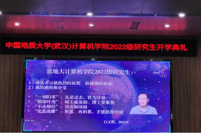 学院93级优秀校友清华大学白玉琪教授寄语2022级研究生新生,并分享自己的心得体会:凡是过去,皆为序章,研究生阶段同学们站在新的起跑线,在硕士阶段要注重基础知识学习和基础框架搭建,在博士阶段要聚焦研究领域的深入探索,戒骄戒躁,潜心积累,踏踏实实走好科研学习的每一步,探索计算机领域的创新成果。