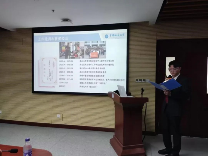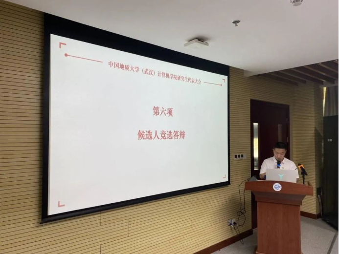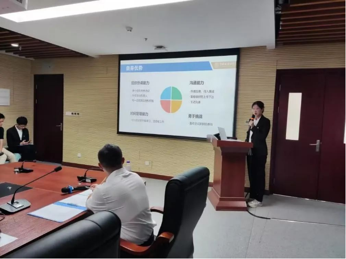 随后,进入第六项议程,候选人竞选答辩阶段。按照抽签顺序,各候选人依次进行竞选答辩,从自我介绍、工作经历、岗位认知、竞选优势和未来工作计划等方面进行展示和陈述。