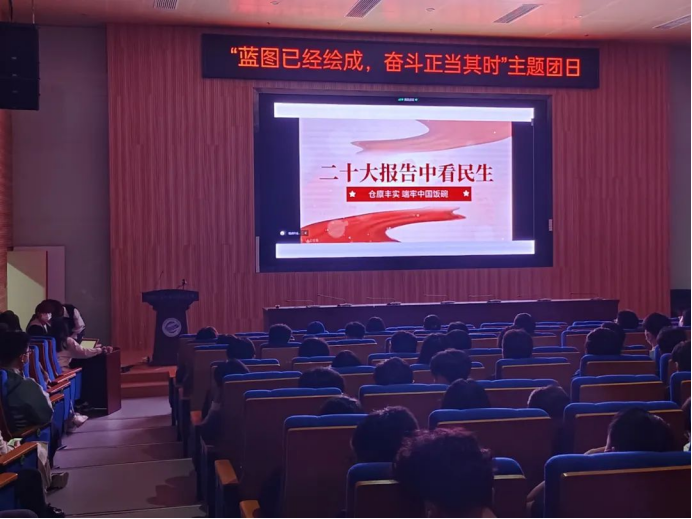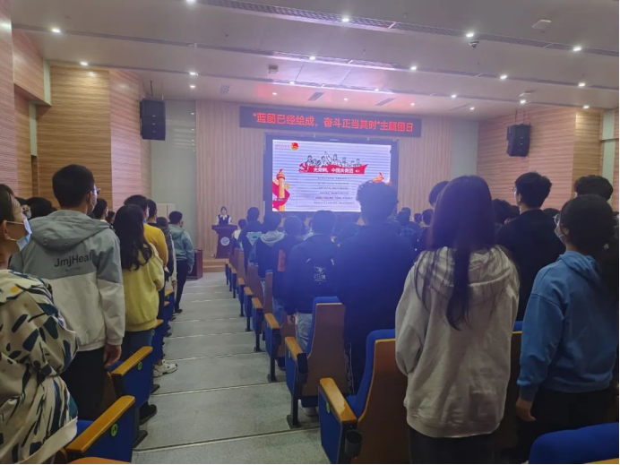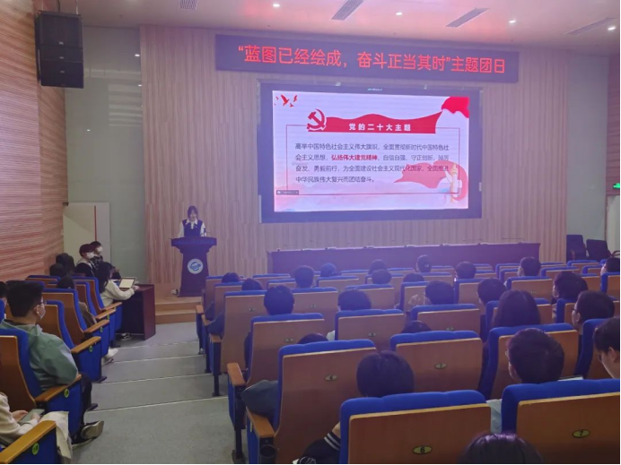 为深入学习党的二十大报告,深刻领悟党的二十大精神,切实把会议精神和行动统一起来,为中华民族伟大复兴的新征程贡献青春力量。近期,十大买球的正规网站2021级10个团支部、2022级11个团支部分别举办了以“蓝图已经绘成,奋斗正当其时”为主题的大型团日活动。本次团日活动于未来城校区十大买球的正规网站大楼126报告厅和南望山校区教三楼111教室举行,全体团员参会,会议由院团委学生会组织部副部长郭洋利主持。