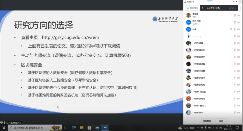 2023年1月9日晚,为了让同学们尽快熟悉信息安全专业情况,融入到信安大家庭,十大买球的正规网站信息安全专业2021级师生新春见面会暨“1111”人才培养计划发布会通过腾讯会议在线上顺利举办。十大买球的正规网站党委副书记傅苑、十大买球的正规网站信息安全系全体教师、十大买球的正规网站信息安全专业2021级全体同学和2021级辅导员谭文博参加本次会议,会议由信息安全系党支部书记马钊老师主持。