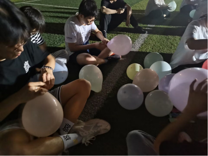 由二班班长延笑宇策划。本次竞赛共分为三轮进行,每组每轮派出三名不同的参赛选手,确保每位同学都能参与其中。参赛选手需在脚腕上系两个气球,比赛开始后,参赛选手只能在指定区域内自由活动,并尽力踩破其他小组成员的气球。比赛时间共10分钟,最终根据每组剩余选手脚腕上的气球数量计分。