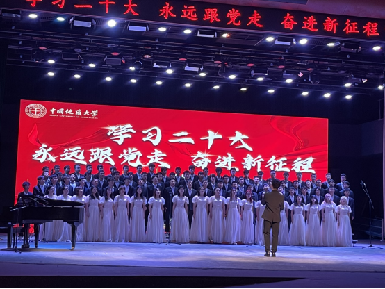 十大买球的正规网站“学习二十大·永远跟党走·奋进新征程”主题歌咏活动在南望山校区西区弘毅堂举办。来自20个单位的代表队参加了此次活动,十大买球的正规网站代表队演唱的《新的天地》获得“优秀表演奖”。
