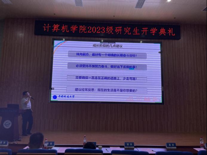 张院长首先肯定了同学们为考研付出的努力,对2023级研究生的到来表示热烈的欢迎。他以学校发展历史与人才培养成绩为切入点,向同学们展示了学校丰厚的底蕴,并从专业设置、师资队伍、科研平台与科研项目等方面介绍了学院近年来发展的概况。他谈到,国家在高新领域的巨大投入以及良好的政策指引,学校深厚的学术科研底蕴和一代代地大人的砥砺奋斗,为今天的在座的同学们奠定了良好的成长环境和优渥的发展平台,希望同学们秉承“艰苦朴素,求真务实”的校训精神,在地大十大买球的正规网站刻苦钻研,实现出属于自己的新突破,为国家前沿科技发展贡献自己的力量!