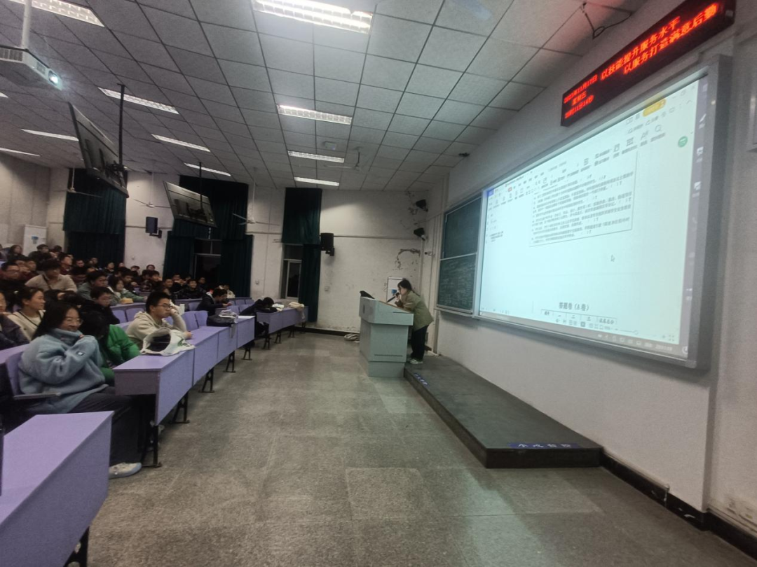 考试结束后,兼职辅导员史莹莹、武玥为同学们公布答案并讲解试卷内容,帮助同学们解开了学习生活中的诸多迷惑,从而更好地把握学习计划和未来目标。