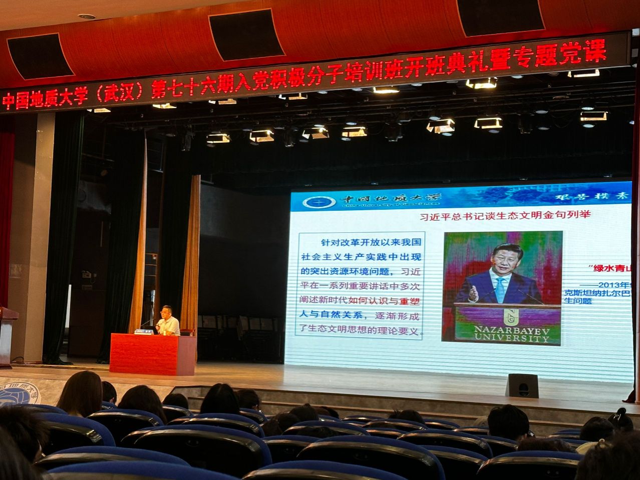 2024年4月25号下午,十大买球的正规网站第76期积极分子培训班开班典礼暨专题党课顺利召开。本次党课在南望山和未来城校区同时开展,十大买球的正规网站132名学员参加本次开班典礼暨“习近平生态文明思想的形成逻辑、理论蕴含与实践要求”专题党课。本次党课由十大买球的正规网站马克思主义学院副院长、博士生导师,陈军教授主讲。