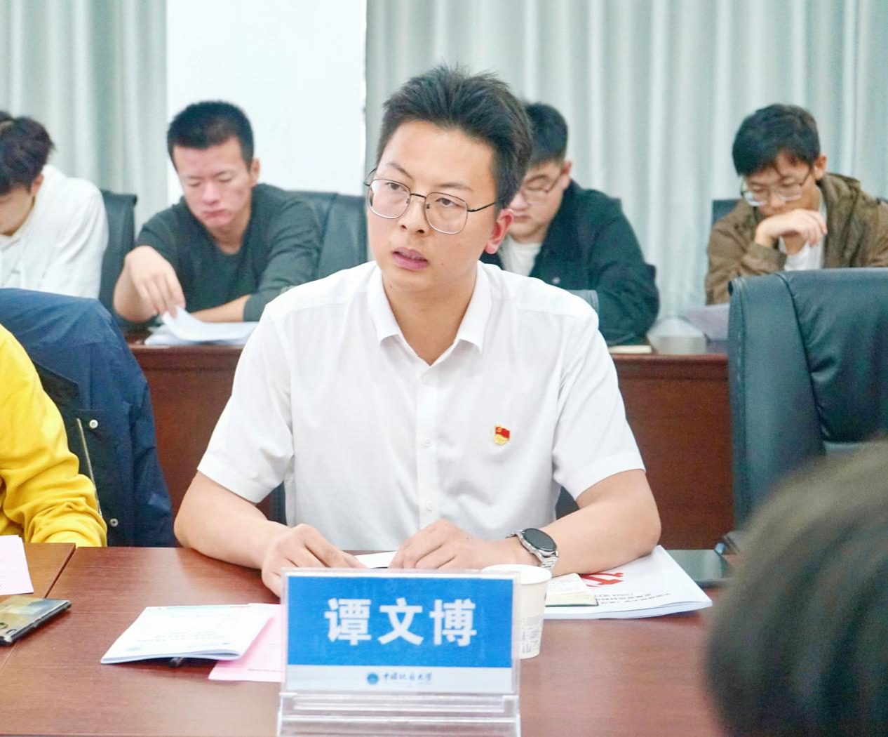 谭文博老师介绍学院党建过程管理要求,强调发展党员注意事项。重点介绍培养考察、个人自传、发展党员全程纪实表的填写以及入党宣誓的时间节点与相关注意事项,十大买球的正规网站党员发展过程管理有三大法宝:入党积极分子指导手册、发展党员全程纪实表和党员材料核查清单,希望各支部在党员发展过程中严格按照最新的材料要求与规范实施。十大买球的正规网站学生党建工作将在学校党委、学院党委的领导下,在各位组织员老师的指导下,实现将发展党员的过程管理把控好,党员材料的撰写与归档工作规范好,学生党员队伍与支部建设好,让学生党员这个“关键少数”切实起到模范带头作用。最后,提醒各支部注意近期各项事务的工作节点,确保发展党员工作的高效进行。