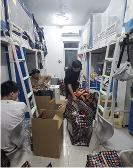 正式搬迁前一晚,辅导员刘佳丹、丁鑫磊和兼职辅导员张玉对全部宿舍进行了逐一走访,深入了解同学们行李、包裹的打包进度,反复叮嘱各批次、各班级行李搬迁及发车时间,温馨提醒大家开展搬迁工作前务必吃好早饭、补充能量,保持良好的精神状态,确保搬迁工作安全、有序地进行。