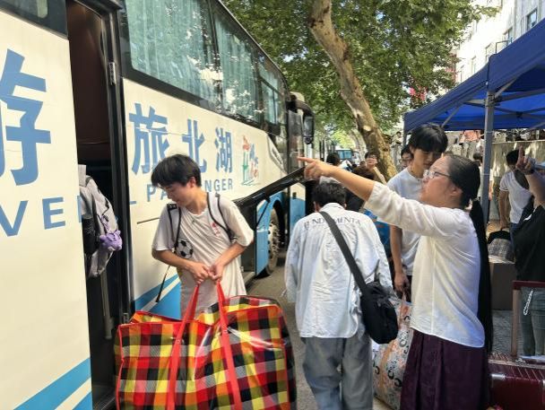 同学们提前将个人行李打包、整理完毕,早早在楼下集合,随着搬运车辆陆续到达,大家自发排队、协作配合,将纸箱、背包等一一传递上班车,摆放得井井有条。虽然天气闷热,但在老师们的带领下,同学们干劲十足,整个搬迁现场忙而不乱,秩序井然。