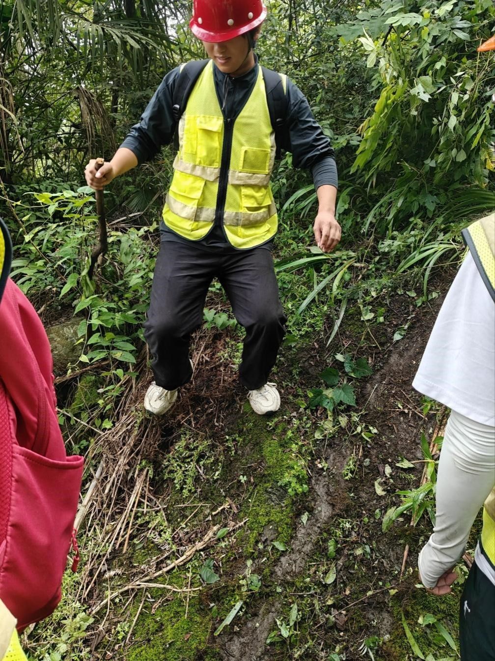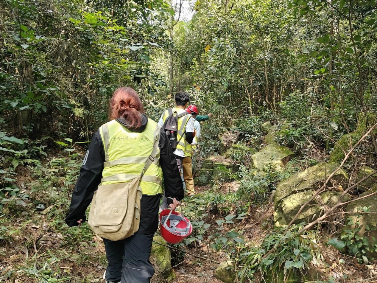 9月18日,雾河填图第二天,路线从雾河出发,到倒坡、白人坡,最后到窑坪子,全程要穿山林、爬陡坡,难度比第一天大了不少。出发前同学们重新调整分工:体力好的同学走在前面开路,观测的同学紧跟其后,避免错过沿途露头。刚进山林,路就变得狭窄湿滑,同学们便用地质锤拨开枝叶,眼睛紧紧盯着脚下,有同学脚下一滑,幸好抓住了旁边的灌木,才没摔下去,后面的同学赶紧伸手拉他:“慢点,踩我踩过的地方!”大家互相提醒、互相搀扶,好不容易爬到坡顶。沿途见陡山沱一二段岩性,莲沱组岩性,南沱组与莲沱组分界点,陡山沱组一段与南沱组分界点。这一天,同学们在山林里爬陡坡、遇风雨,却也在互助与坚持中,离雾河的地质真相更近了一步。