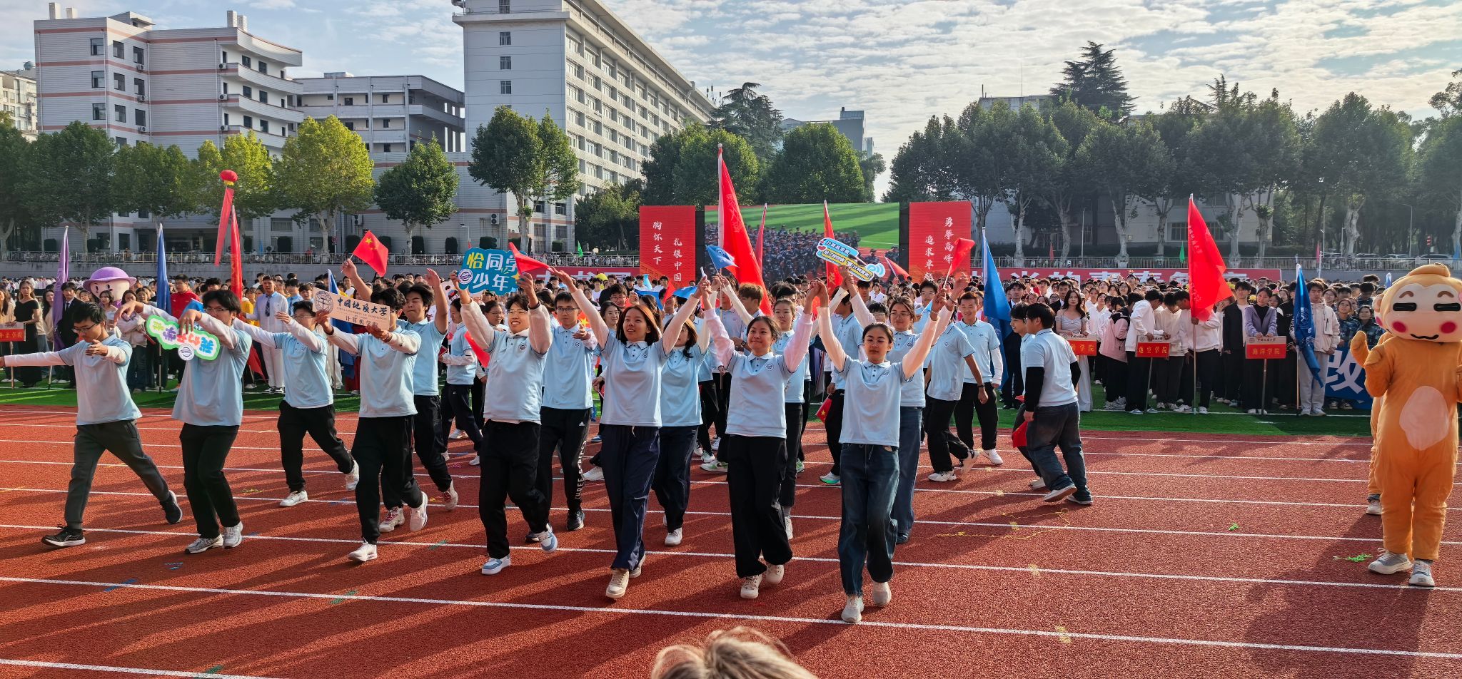 凉风送爽,秋意初绽,一年一度的校运会在南望山下如期举行。运动场上人山人海,各院学子齐聚一堂,共同见证这场活力盛宴的盛大开幕。