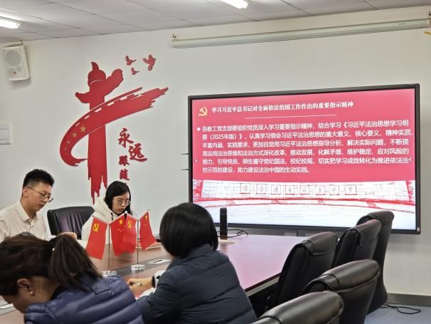 刘佳丹带领大家学习习近平总书记关于全面依法治国工作的重要指示精神,并结合高校教育工作实际,深刻阐述了依法治教的重要意义与实践路径。