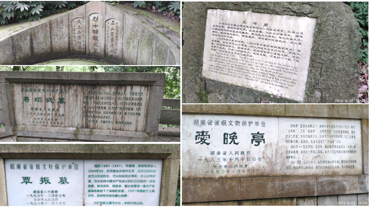 湖南孕育了一批爱国主义志士,岳麓山也长眠着许多生于此的名人。辛亥革命的重要领袖黄兴、武昌起义和讨袁废帝的重要将领蔡锷等革命先驱,均国葬于此。另外,谭馥、蒋翊武等烈士,覃振等爱国主义领袖,也沉睡于岳麓山。我们一路参观,一路缅怀。有了这些爱国主义志士和先烈的身先士卒,才有了封建帝制的消亡,也才有了社会主义中国的政治基础。