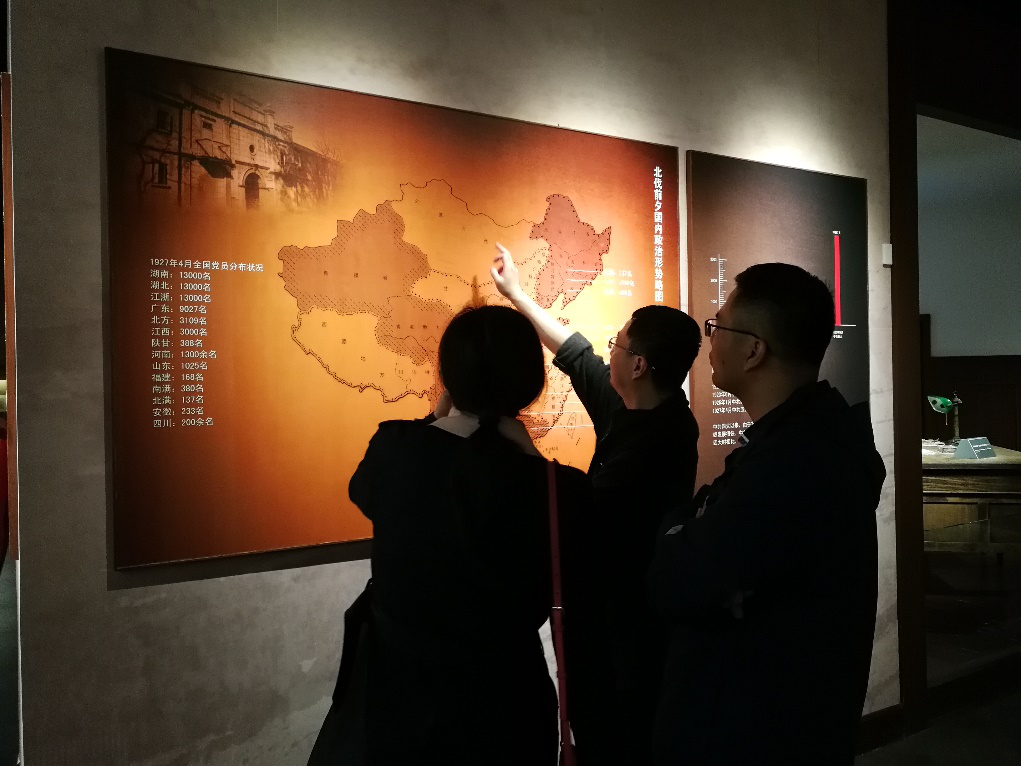 在会址纪念馆内,党员同志们认真观览了馆藏史料、历史图片及五大会议历史文物,全方位地学习了中共五大召开的历史背景、主要参会代表的革命事迹、会议历程和会议的现实影响。