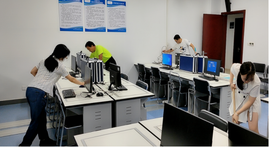 按照学院需要,大家不顾天气炎热分工协作,积极清除学院楼道杂物,清扫学生机房、学院会议室、资料室、档案室等公共区域,并进行了消毒杀菌,清除安全隐患,保持环境卫生。