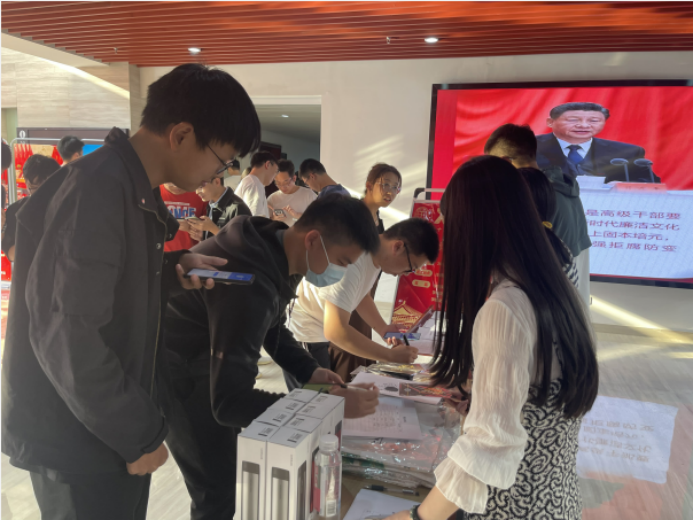 学校“样板党支部”十大买球的正规网站博士生党组织部牵头负责的“党风廉政知识竞答”活动,通过现场扫码扫码答题赢取学院文创产品的形式,引导广大师生学习党风廉政建设理论知识、了解党风廉政建设的重要意义,增强师生爱院荣院教育。活动吸引了近300名师生参与互动答题,共有23名师生获得满分成绩。