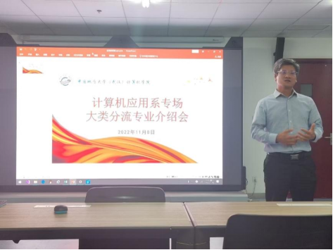 为深入践行“学党史、悟思想、办实事、开新局”要求,结合党史学习教育“我为群众办实事”实际,计算机应用系党支部牢牢把握“以生为本”的原则,结合2022年11月8日下午发布的十大买球的正规网站关于2021级计算机大类本科生专业分流通知,计算机应用系党支部于当天晚上7:00在学院235虚拟仿真实验室召开空间信息与数字技术专业答疑见面会,空间信息与数字技术专业学科带头人刘刚教授、系主任张夏林、党支部书记武云、班主任张志庭和李章林,辅导员谭文博参会,2021级本科生报名参会,武云担任主持。