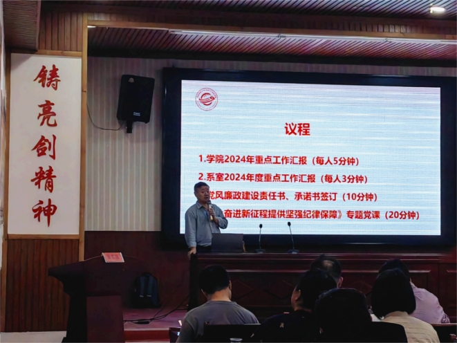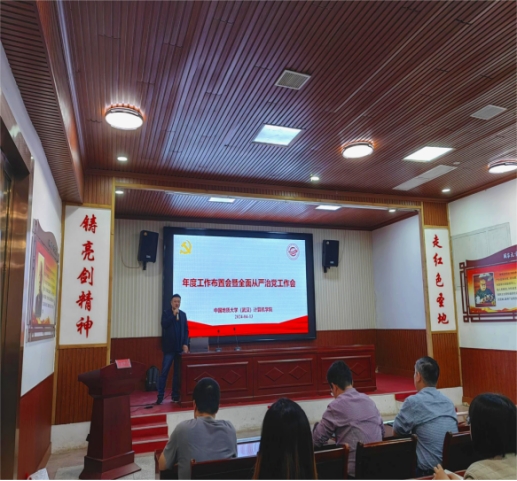 随后,学院召开年度工作部署会暨全面从严治党工作会。院党委书记李国昌,副院长刘刚、陈云亮,院纪委书记、党委副书记林小艳,院长张洪艳分别报告了分管工作的年度安排,林小艳讲授专题党课《为奋进新征程提供坚强纪律保障》。