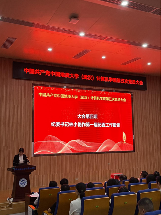 学院纪委书记林小艳代表学院第一届纪委作《忠诚履行职责使命深化全面从严治党——为建设国内知名的高水平计算机学科提供坚强保障》工作报告。
