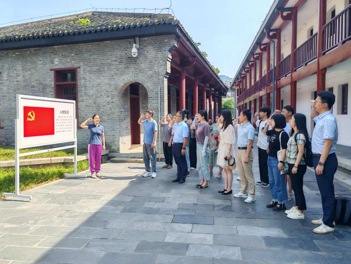 “我志愿加入中国共产党,拥护党的纲领,遵守党的章程……”在中共五大会址小广场前,软件工程系党支部书记叶亚琴带领师生党员重温入党誓词。大家铿锵有力的宣誓,表达着不忘初心、牢记使命、奋发有为的信念和决心。
