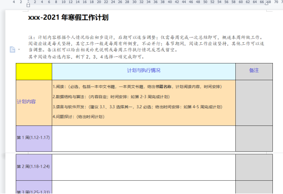 假期作业计划表