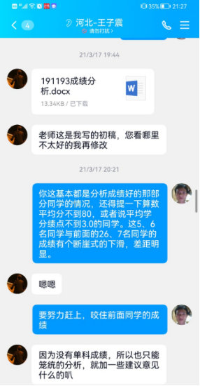 他每学期召开一次学习分析交流会,分析成绩,分享优秀同学学习经验。指导怎样学。