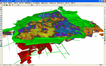 快速市场响应机制下的动态资源储量估算技术是关键技术之一。目前市场经济主导下的企业,在储量估算过程中,希望根据市场矿产品的价格,灵活调整工业指标,达到企业盈利的目标。所以要求储量估算软件能够对储量估算中的工业指标进行估算,并基于这些指标快速完成储量估算,对资源储量进行动态评估,保证企业对市场做出快速响应。要实现这一目标,面临如下的难题:(1)多因素制约下经济评价困难,经济的边界品位确定困难;(2)传统方法资源储量估算周期长,难于实现快速估算;(3)在新的储量估算成果上,配套的开采方案的设计周期长。在数字矿山软件研发过程中,采用了快速市场响应机制下的动态资源储量估算技术,有效地解决了该问题。在软件中开发实现了快速动态储量估算的功能包括地质统计学法,和传统的垂直断面法和地质块段法,特别是在地质统计学方法中研究解决了多模型的矿体块体模型构建方法,实现了灵活的空间变异性分析工具,开发了类型丰富的克里格估值方法。保证在新的工业指标体系下,借助软件可以快速完成储量估算。并可在三维的环境中对不同的圈矿品位条件下,矿体的结构及属性的实时三维可视化表达(图4)。